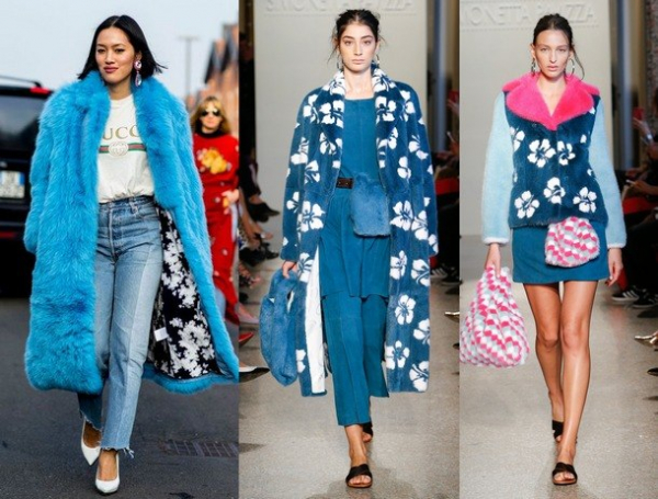 Особенность зимнего сезона 2018-2019 года в том, что модные тенденции диктуют для шубы интересные вариации оттенков. На фото можно увидеть палитру сочных летних цветов. Они просто поражают разнообразием расцветок: