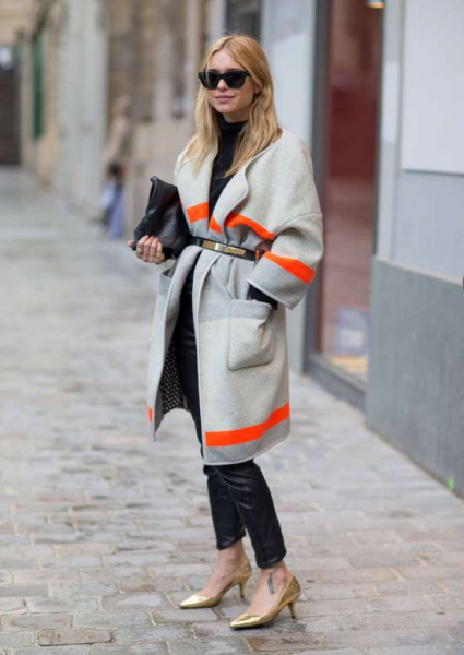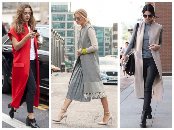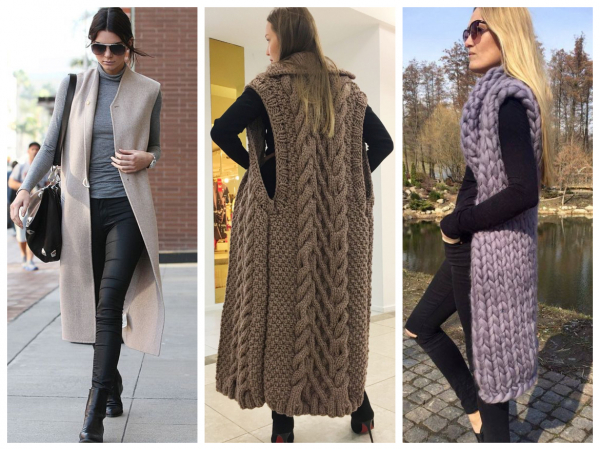 Модели, напоминающие пальто, отлично подойдут для холодных дней. Они имеют длину до середины щиколотки. Легко сочетаются с брючными костюмами. Интересный образ можно создать с кардиганами из искусственного меха.
