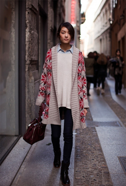 Предстоящей осенью дизайнеры призывают модниц смело экспериментировать со своим стилем. Это значит, что в гардеробе могут быть и укороченные и длинные модели кардиганов. Модели макси в одинаковой мере элегантно выглядят и на высоких девушках и женщинах небольшого роста. Они придают образу изящности, привлекательности и женственности.