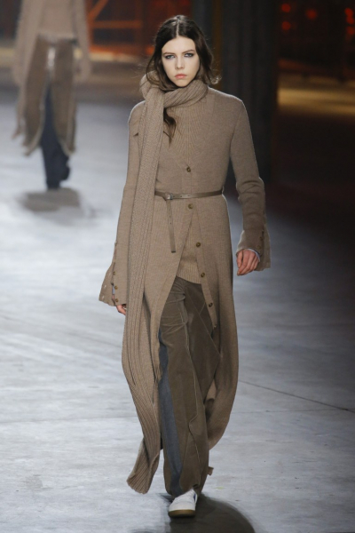 Но мода не оставила без внимания и ценителей классики. На фото с показов можно встретить одежду привычных осенних оттенков. Гардероб предлагается пополнить, к примеру, укороченным белоснежным кардиганом.