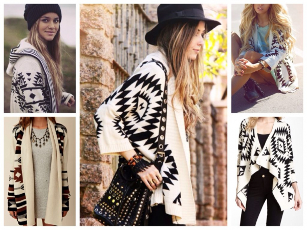 • К моделям, украшенным геометрическим орнаментом тяжелее всего подобрать гармоничное сочетание. Стилисты рекомендуют выбирать кофты светлых оттенков, джинсы бойфренды, полусапожки и сумочки из кожи.