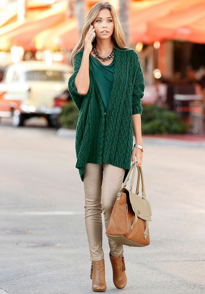 • Для работы или учебы лучше выбрать кардиган укороченной длины. Его легко сочетать с джинсами, светлой рубашкой. Из обуви подойдут утепленные кеды, а также полусапожки. Необходимые мелочи легко сложить в рюкзак.
