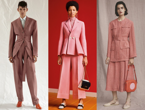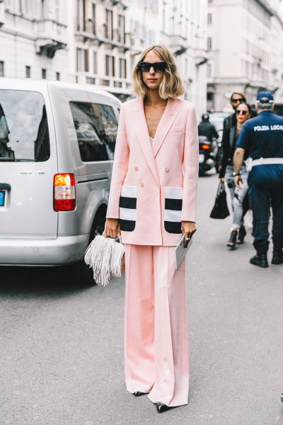 Жакеты при этом бывают самых разных силуэтов. В качестве декора могут служить стрелки на брюках или манжеты.