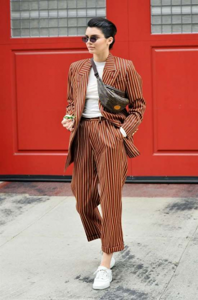 При этом модные тенденции 2018 года обещают, что привычные женские брючные костюмы в спортивном стиле будут стильным мастхэвом. Об этом же свидетельствуют и фото знаменитостей, которые уже летом предпочли спортивного вида брюки и жакеты.