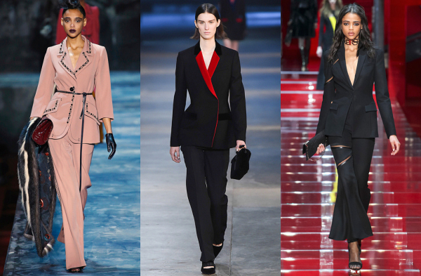 Женственная романтичная особа, революционная феминистка, деловая приверженка карьеры — любая девушка сможет найти себе под стать универсальное и стильное решение в виде брючного костюма на холодное время года.