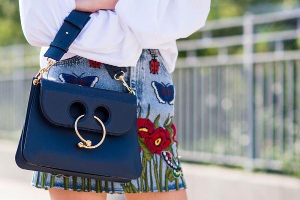 Не стоит забывать классическое правило сочетания яркого цвета и формы сумки — простой фасон в сочетании с наличием минимального декора. Декорированные детали идеально дополнят современную модель следующим образом: