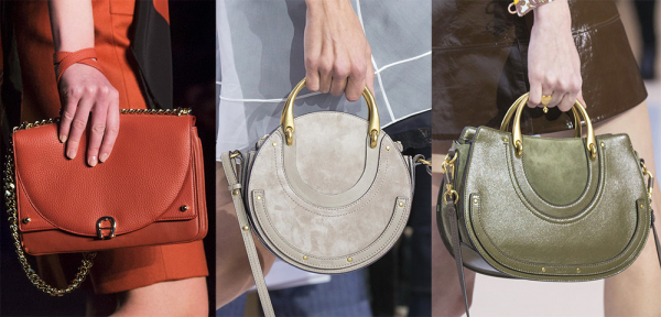 Цветовое решение принято в пользу натуральных, спокойных оттенков, дополняющих монохромный образ. Однако, сумки ярких расцветок, сочных, живых цветов не исчезнут из гардеробов модных барышень.