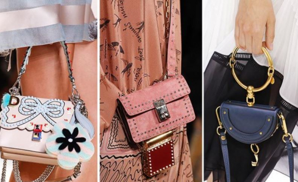 Микросумки из прошлого сезона плавно перешли в осень и зиму 2018 года и еще больше уменьшились в размере. Новая мини-сумочка органично смотрится на шее, чем на плече или поясе. Дизайнеры советуют нам носить такие крошечные модели вместо подвесок или крепить спереди на одежду. Практичная сторона декоративных сумок-малюток полностью отсутствует из-за минимальной вместимости. Модные критики воспринимают такие ультра-мини модели в качестве бижутерии или дополнения к многослойному образу.