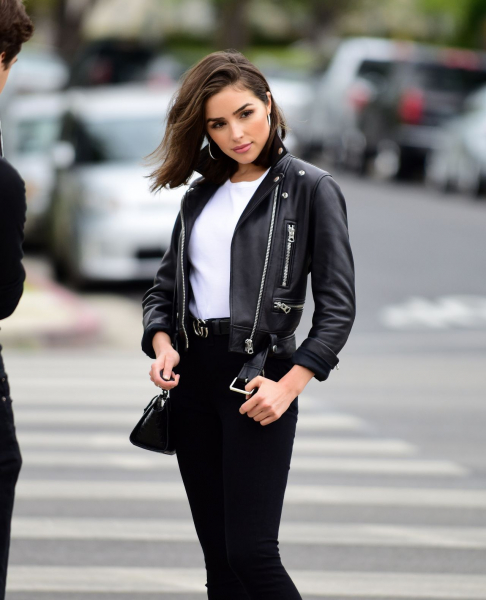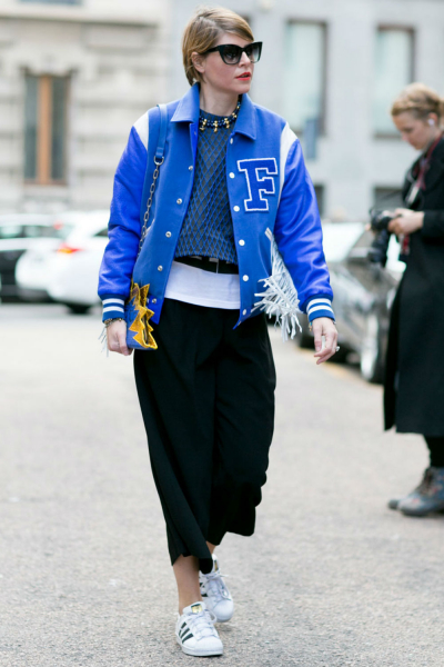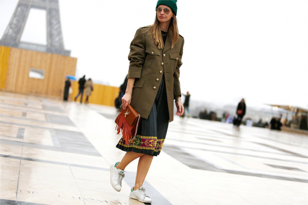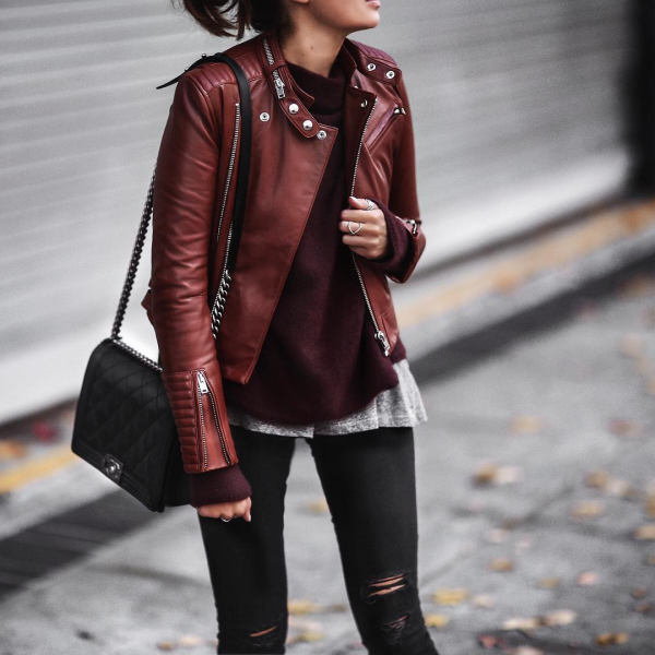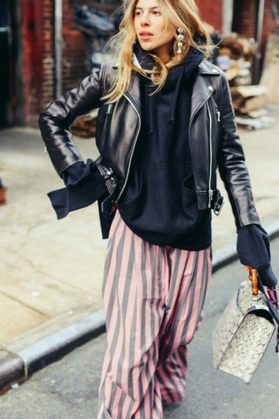 В тренде на протяжении последних нескольких лет остаются косухи. Такие кожаные куртки не только практичны, но и универсальны. Их легко сочетать с платьем любой длины — выше колена, в пол, зауженными брюками, топами и блузами. Из обуви — конверсы, туфли, ботинки, ботильоны на шпильке.