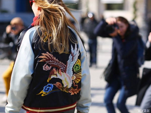 Внимание окружающих привлекут модные женские куртки с вышивкой и принтами. Этот тренд осени 2018 года, который встречается не только в верхней одежде, как видно по фото.