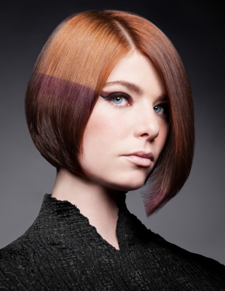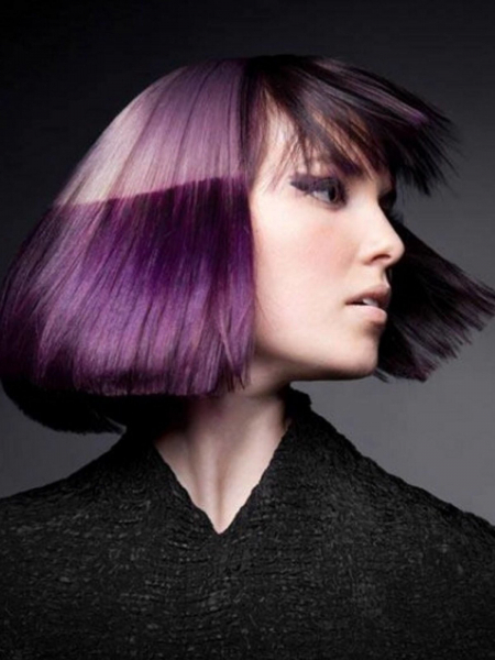 Следующий вариант колорирования разработан исключительно для короткой длины. Фото яркой новинки уже украшают глянцевые журналы, и выглядят очень привлекательно. Альтернативой популярному уже не один сезон омбре, станет четкое разделение двух контрастных цветов. Главная задача модниц, использующих эту технику, сделать яркую, выразительную прическу.