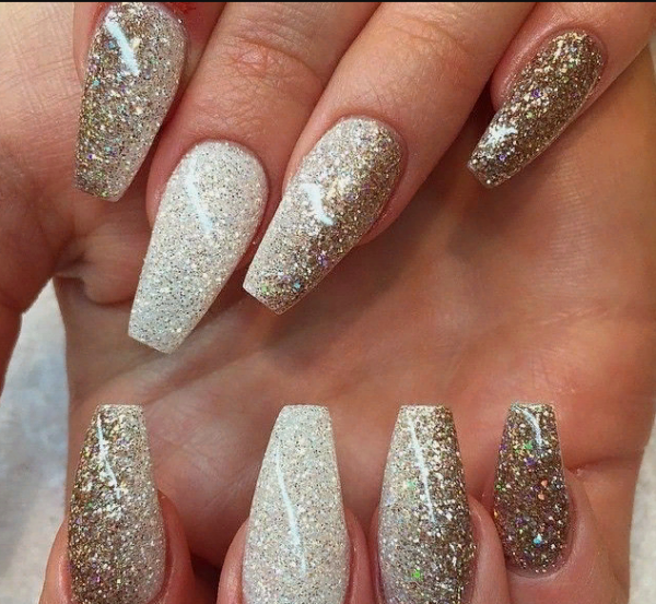 Также популярен в маникюре и рассыпчатый глиттер с различными, по форме и размеру, частицами.