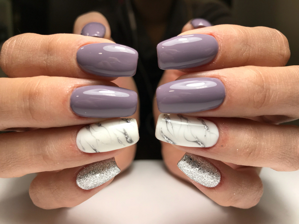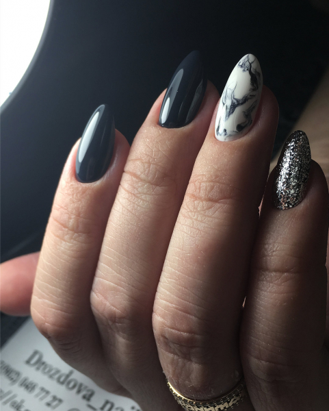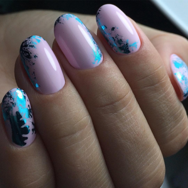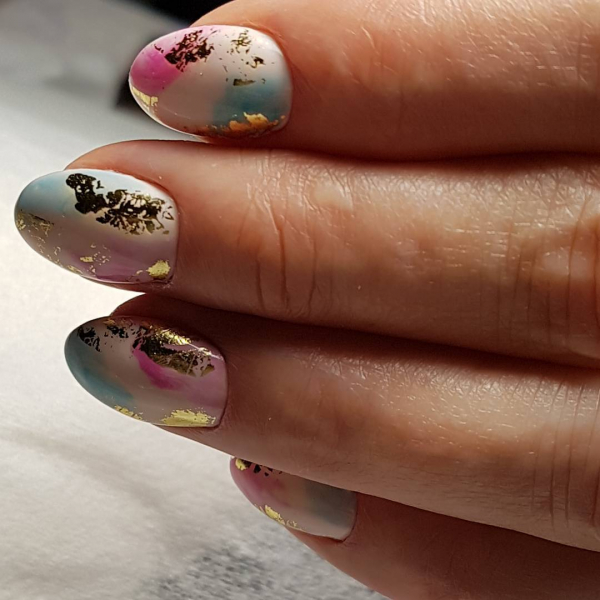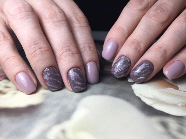 Однако эксперимент с другими цветами гель-лака, которые выбирают модницы в 2019 году, также приветствуется. Мраморные разводы отлично смотрятся и в металлизированном использовании с золотистыми или серебряными гель-лаками.