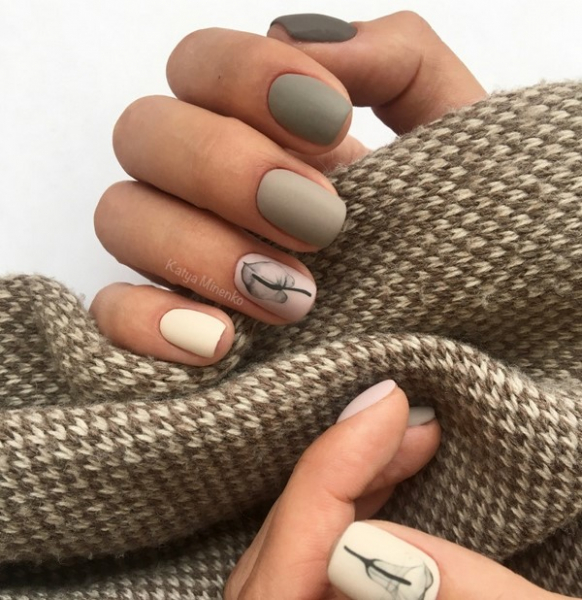 Даже в минималистическом трендовом маникюре присутствие нейл-арта приветствуется модой, пусть и в «умеренном» его варианте, как видно на фото.