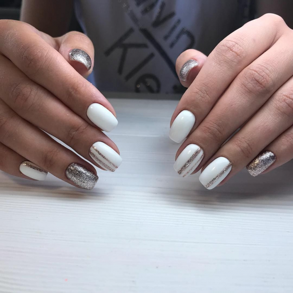 Практически каждая маникюрная композиция или техника активно использует глиттер. Даже классика преображается в новинку и смотрится как самый лучший маникюр сезона с использованием мерцающего гель-лака.