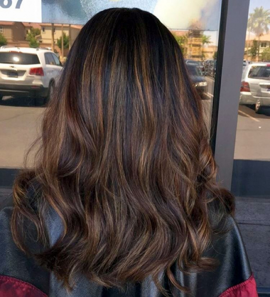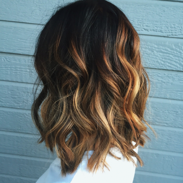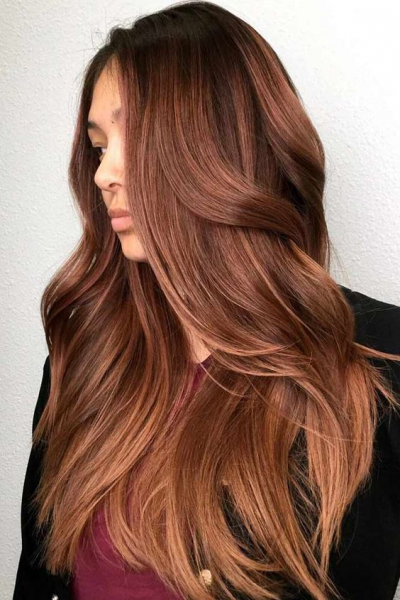Беспроигрышное сочетание каштанового и рыжего остается актуальным во все времена. Теплые оттенки шоколада, золотистые переливы и медные отблески на средних волосах эффектно подчеркнут загар, заставят кожу брюнеток сиять и сделают окрашивание волос самым модным в 2019 году. При этом оттенок выглядит естественно и натурально, гармонично сочетаясь с любым цветом глаз.