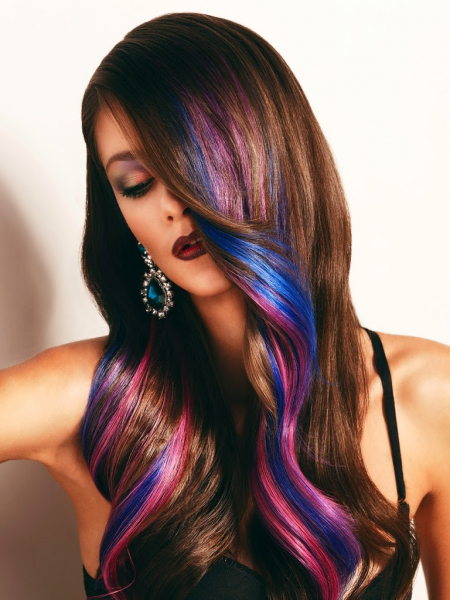 Для брюнеток мастера индустрии красоты предлагают абсолютно беспрецедентное решение, ставшее доступным благодаря появлению красителей нового поколения. Теперь, для украшения прически яркими прядями не придется прибегать к сильному осветлению, сжигая волосы.