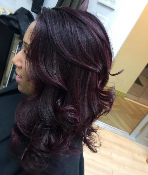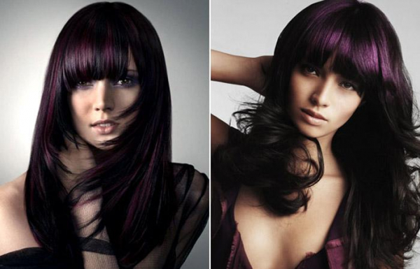 Насыщенный черный оттенок с лиловыми нотками уверенно набирает популярность. Это холодный аристократичный цвет, который придает обладательнице утонченность и лоск. Для создания требуемой цветовой комбинации необходим настоящий профессионал своего дела, который умело совместит фиолетовые пряди и темную основу. Броско и элегантно оттенок будет смотреться на здоровых, ухоженных волосах.