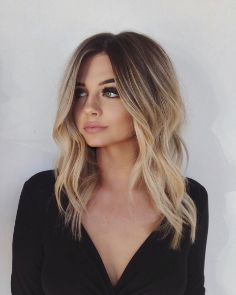Главной новинкой сезона 2019 на средние волосы является специальная техника, которая предполагает окрашивание волос у лица более светлым тоном. Это придает блондинкам неповторимый шарм и сияние.