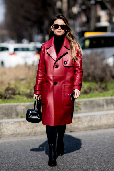 Классические силуэты, строгие линии и выразительные цвета отличаю новую линейку изделий из кожи. Модные кутюрье сделали акцент на лаконичный дизайн и качественные материалы. В этом сезоне кожаные пальто будут официальными и строгими. Для моделей используется в основном черный цвет, который подчеркивает силуэт.