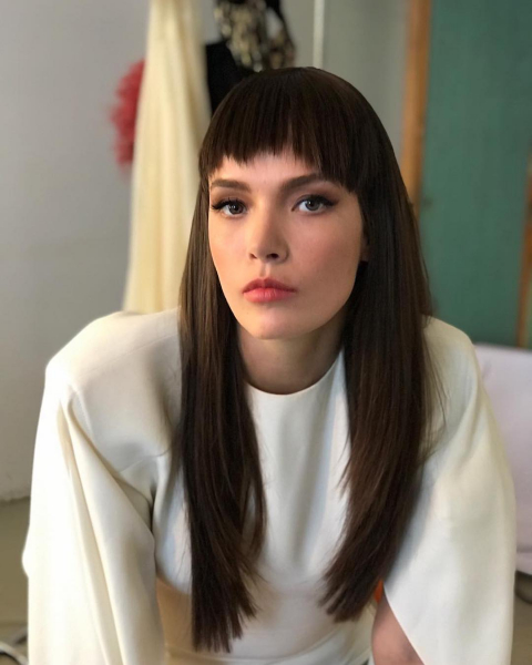 Очень короткая челка в 2019 году вышла, если можно так сказать, на новый уровень. Она подходит девушкам с густыми и прямыми волосами, которые хотят быть похожими на Клеопатру и визуально округлить лицо.