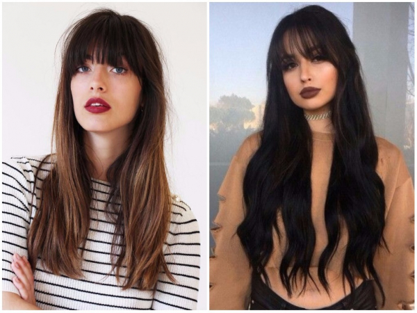 Еще одна модная тенденция 2019 года на длинные волосы. Вариант челки для густых и толстых волос. Стрижка добавит любому образу женственности, таинственности и привлекательности.