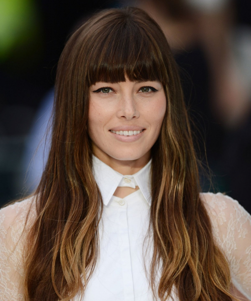 Если говорить о современных звездах, то одной из первых к такому варианту прически пришла Дженнифер Лопес. Челка на две стороны хорошо подходит под тип ее внешности и идеально дополняет прическу.
