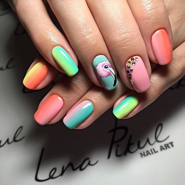 Омбре хорошо сочетается с любыми декоративными элементами и может быть самостоятельным вариантом маникюра. Фото новинок маникюра 2019 года изобилуют разнообразным омбре, позволяют фантазировать в сочетании оттенков и использовании разных элементов декора.