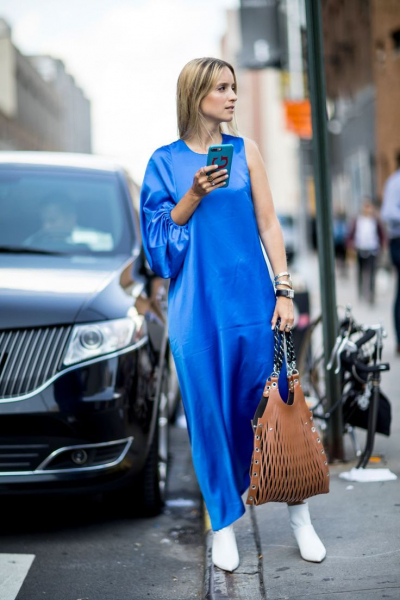 Весьма востребованным считается джинсовый материал и total-look с денимом на первом плане, несмотря на его плотность. Для вечерних прогулок и выходов в свет лучше всего подойдут шелк и атлас.