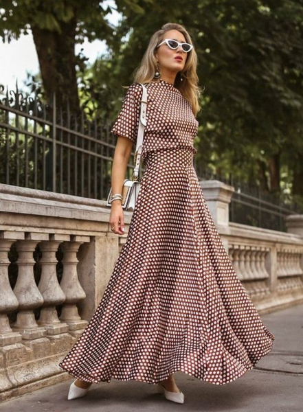 Летние платья 2019 года в этом сезоне украшаются геометрическими узорами, в тренд вновь вернулся горошек. Мода невероятно циклична! Величина узоров, фасона и цветовые решения уже не имеют значения.