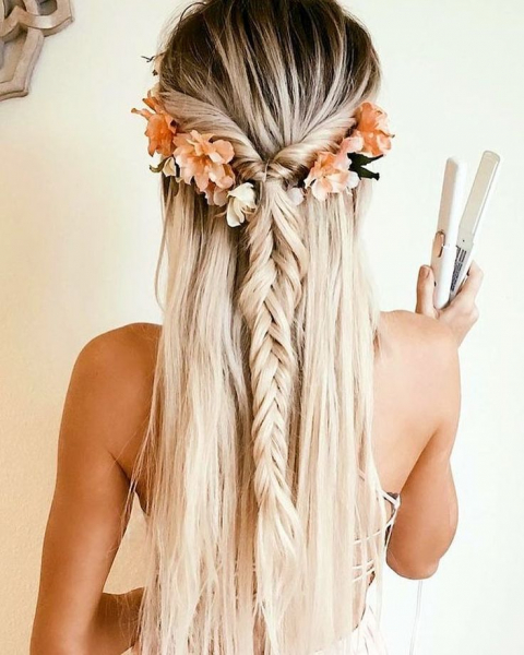 Это самая беспроигрышная прическа для девушки на выпускной 2019 года. Ее можно делать самой на длинные волосы, используя небольшой набор средств для волос: