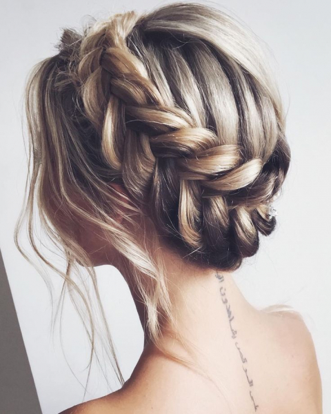 Можно сделать эффектные причёски на выпускной 2019 года на основе французской косы, она отлично ложится на длинные волосы. Укладки такого типа отличает эффект легкой небрежности, когда основная часть волос переплетена особым способом, а выпущенные локоны и свободные пряди создают эффект легкости и воздушности.