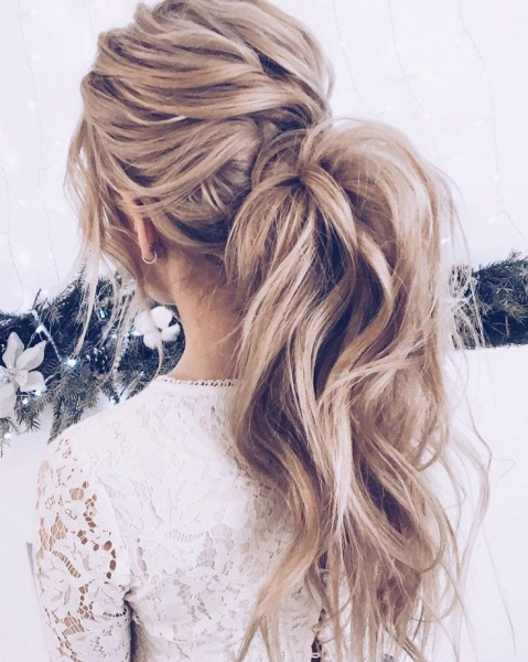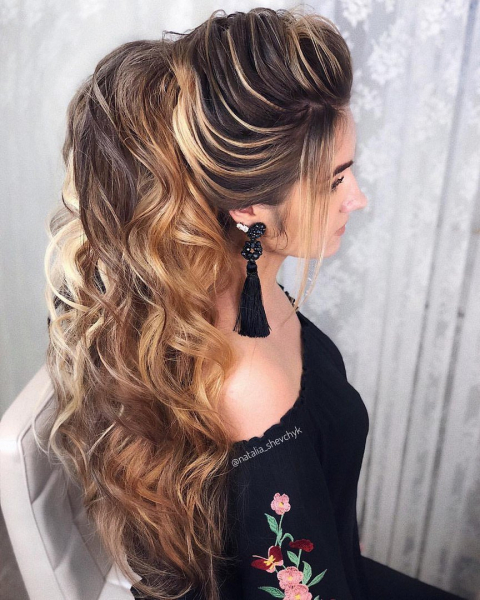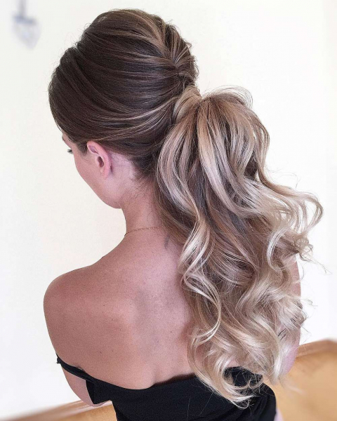 Эффектный хвост из длинных волос для выпускного