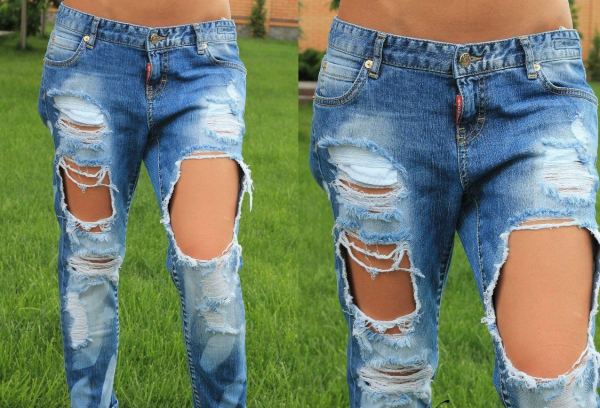 Таким образом, можно в короткий срок сделать несколько дырок и из старых штанов получить новые стильные джинсы.