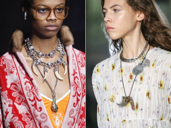 Дизайнерам женских украшений пришла в голову неожиданная идея — превратить сумку в кулон. Мини-сумки на изящных шеях девушек можно увидеть в показах от таких модельеров, как Emilio Pucci, Giambattista Valli, Jacquemus и Tod's. Такие модные аксессуары в виде сумок на осень 2019 года будут на пике популярности.