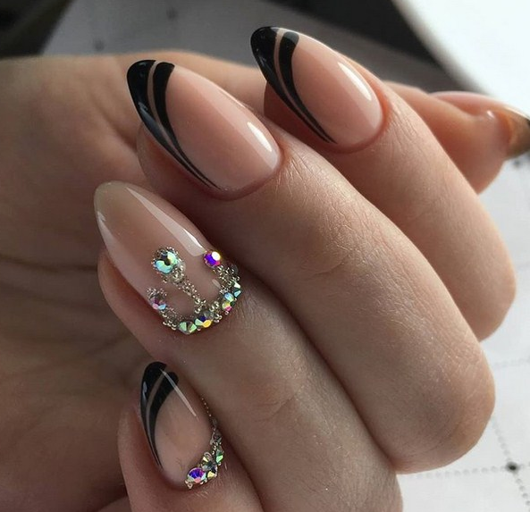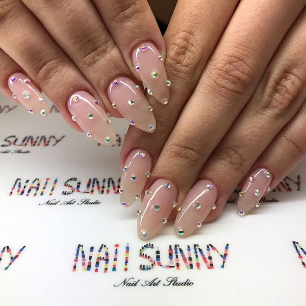 Модные идеи сезона на длинные ногти со стразами