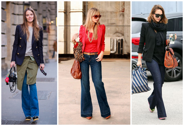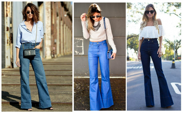 Фасон клеш оставался на вершине модных ступенек в 90-е годы, он снова возвращается, немного изменившись. Линия отреза талии обозначена чуть повыше, а расцветка – традиционный деним. Данный вид пошива прекрасно отмечает достоинства и удобно скрывает недостатки.