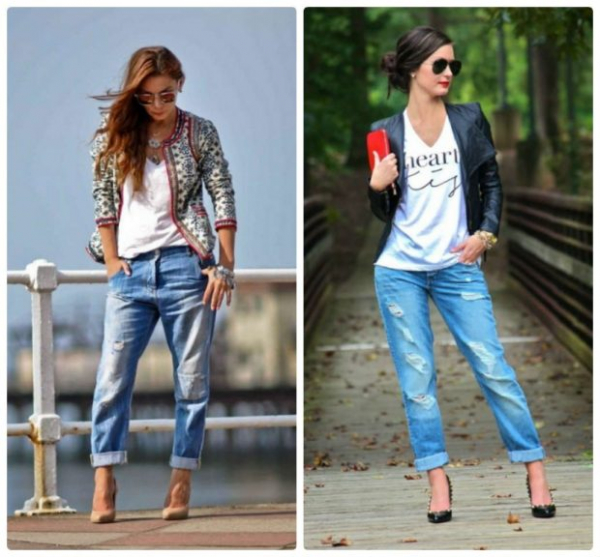 Изделия классического покроя остаются без изменений, без множества карманов и украшений. Модельеры советуют джинсы ровного кроя снизу отворачивать, а носить их можно с обувью на низком ходу и с каблуком.