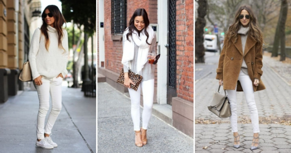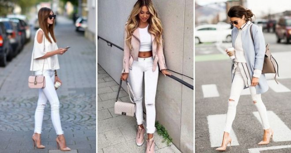 Для теплого летнего времени года отличным вариантом являются популярные белые штаны. Светлый наряд подходит для слабого пола со стройным телосложением. Блузы под белые джинсы лучше выбирать контрастных ярких или темных оттенков.