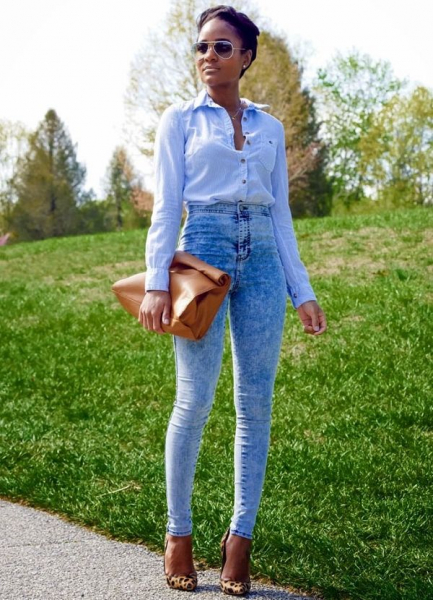 Фасоны с высокой посадкой поражают своим разнообразием. Такие джинсы, плотно обтягивая фигуру, выделяют осиную талию и соблазнительные изгибы тела, обуславливая кокетливый образ. Дизайнеры рекомендуют скинни носить девушкам худощавого телосложения со стройными ногами.