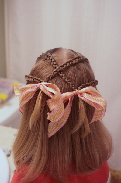Это, пожалуй, самая трудоемкая прическа из всех представленных здесь. Она больше подходит именно для праздника, однако как только вы ее правильно сделаете, ваш ребенок однозначно скажет вам спасибо!