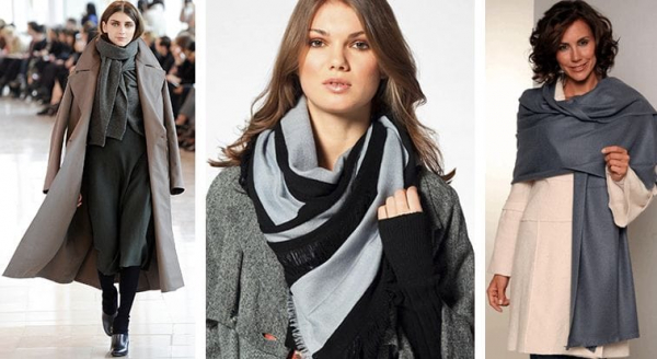Красиво завязать платок можно не только на шее, но и поверх одежды. Особенно женщинами любим такой вариант в тандеме с пальто.