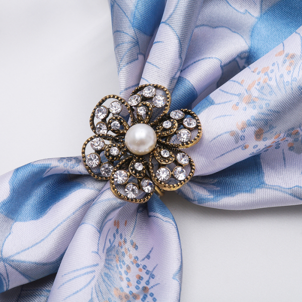 Для того, чтобы привнести в образ больше роскоши, зафиксируйте концы платка специальной декоративной пряжкой или брошью.