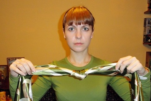 - теперь оберните получившийся жгут вокруг шеи столько раз, насколько хватит длины;