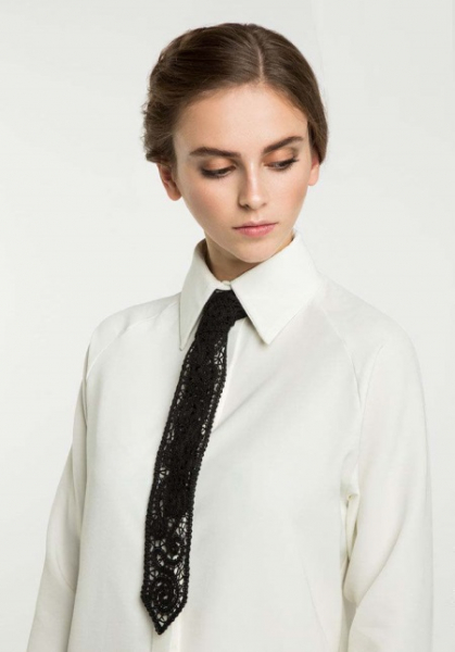 Сегодня галстук прерогатива не только мужского гардероба. Узкий аксессуар перекочевал и в женские луки. Его завязывают мужскими способами, закалывают булавками и заколками, допуская легкую небрежность и свободу. Приветствуется, когда концы аксессуара не совпадают.