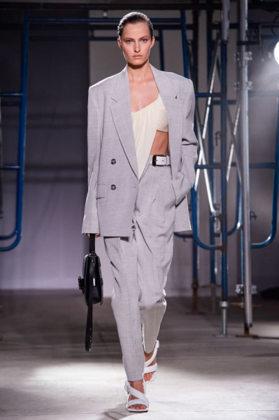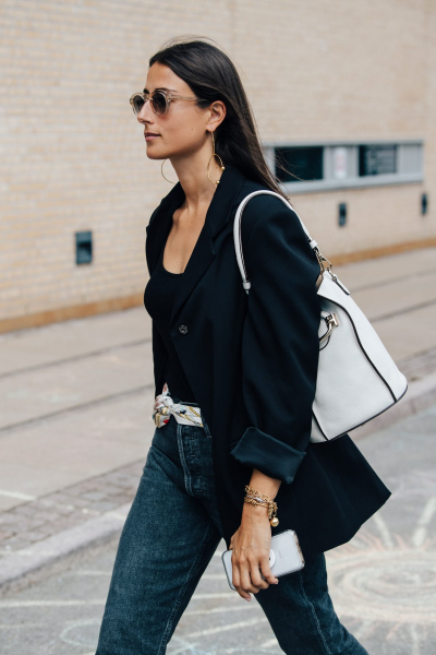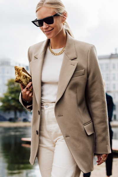 Лучше всего, если он будет двубортным и с карманами. Кроме того, в этом году дизайнеры предлагали и гибридные вариации – пиджаки в пол, напоминающие платья. Тут важную роль играет цвет, поскольку такой пиджак уже и есть главный акцент образа.