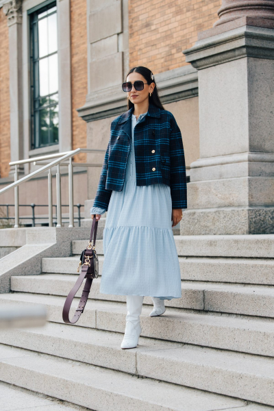 - Конечно, клетка. Это неоспоримый хит. Ее комбинируют с клетчатыми штанами (причем эта клетка уже может быть другого типа), а также с джинсами клеш. В качестве основного цвета для коричневой клетки можно взять голубой.