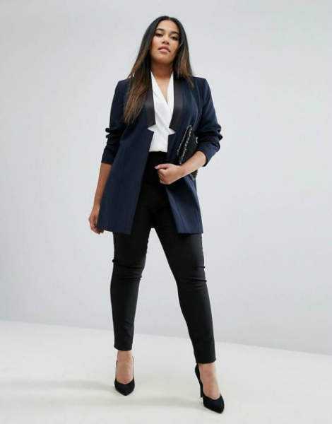 Если вы обладательница пышных форм – пиджак поможет сделать выразительными красивые изгибы вашей фигуры, и подчеркнуть достоинства. Отлично жакеты смотрятся на девушках с типом фигуры «песочные часы». Модные пиджаки, которые предлагают стилисты для полных женщин гармонично структурируют форму тела и даже могут приблизить силуэт к идеалу.