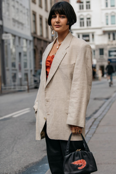 - Из легких тканей. Для весны и лета 2020 можно присмотреть льняные блейзеры. Они должны быть свободного кроя, но не мешковатого.
