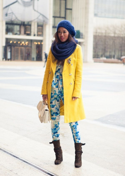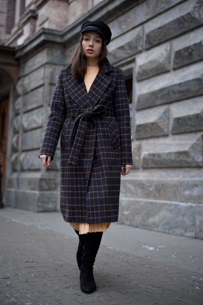 - К модному нынче принтованному пальто стоит подбирать головной убор того оттенка, который на верхней одежде присутствует в минимальном количестве.